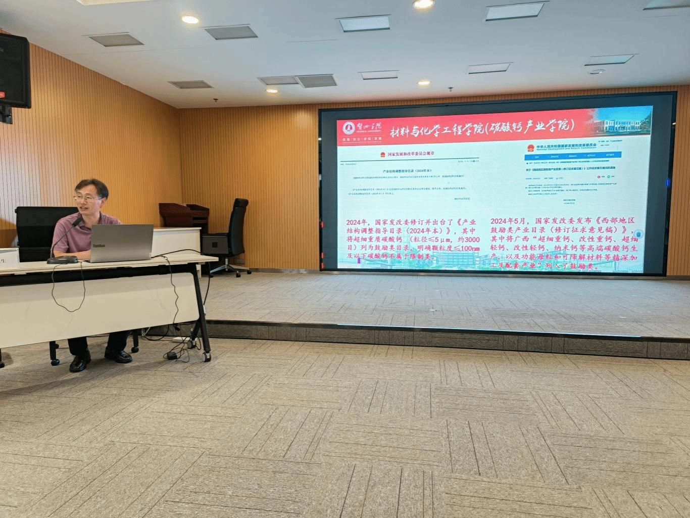 为推动碳酸钙产业高质量发展,加速科技成果转化与产业化进程。2025年7月8日上午,学院副院长万茂生博士应邀赴贺州市高新区作碳酸钙产业科技成果转化专题宣讲。高新区管委毛建华副主任等相关同志及来自贺州市碳酸钙等行业近百家企业负责人和管理人员参加宣讲活动。
