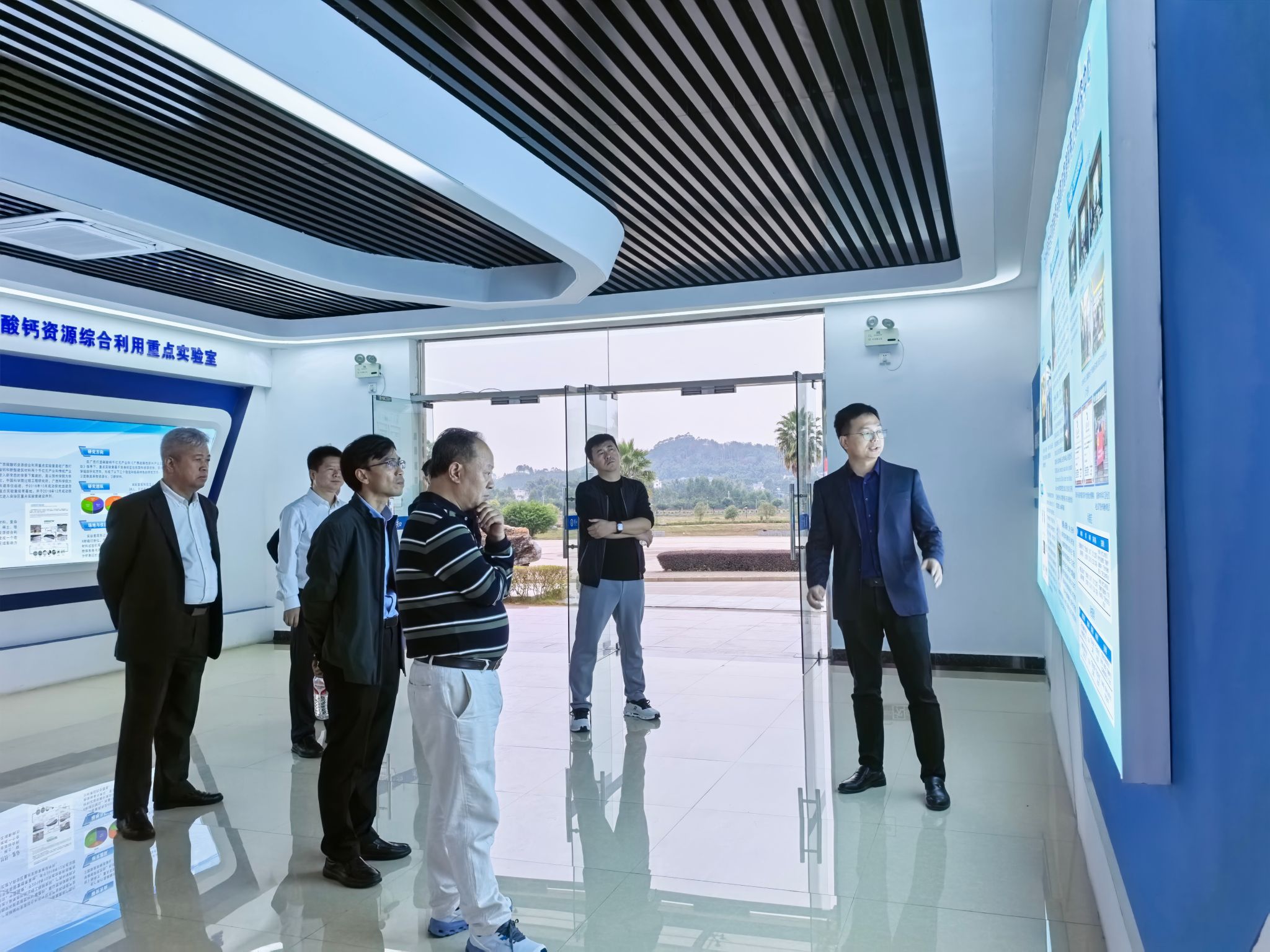 会议前,郭斌教授在吕海波校长的陪同下,实地考察了广西碳酸钙资源综合利用重点实验室、广西壮族自治区碳酸钙资源高效高值利用工程研究中心、广西碳酸钙产业科技成果转化中试研究基地等自治区级学科创新平台,深入了解学院服务地方产业的情况,对学校在短时间内取得的阶段性成果给予了“定位清晰、基础扎实、成效显著”的高度评价。